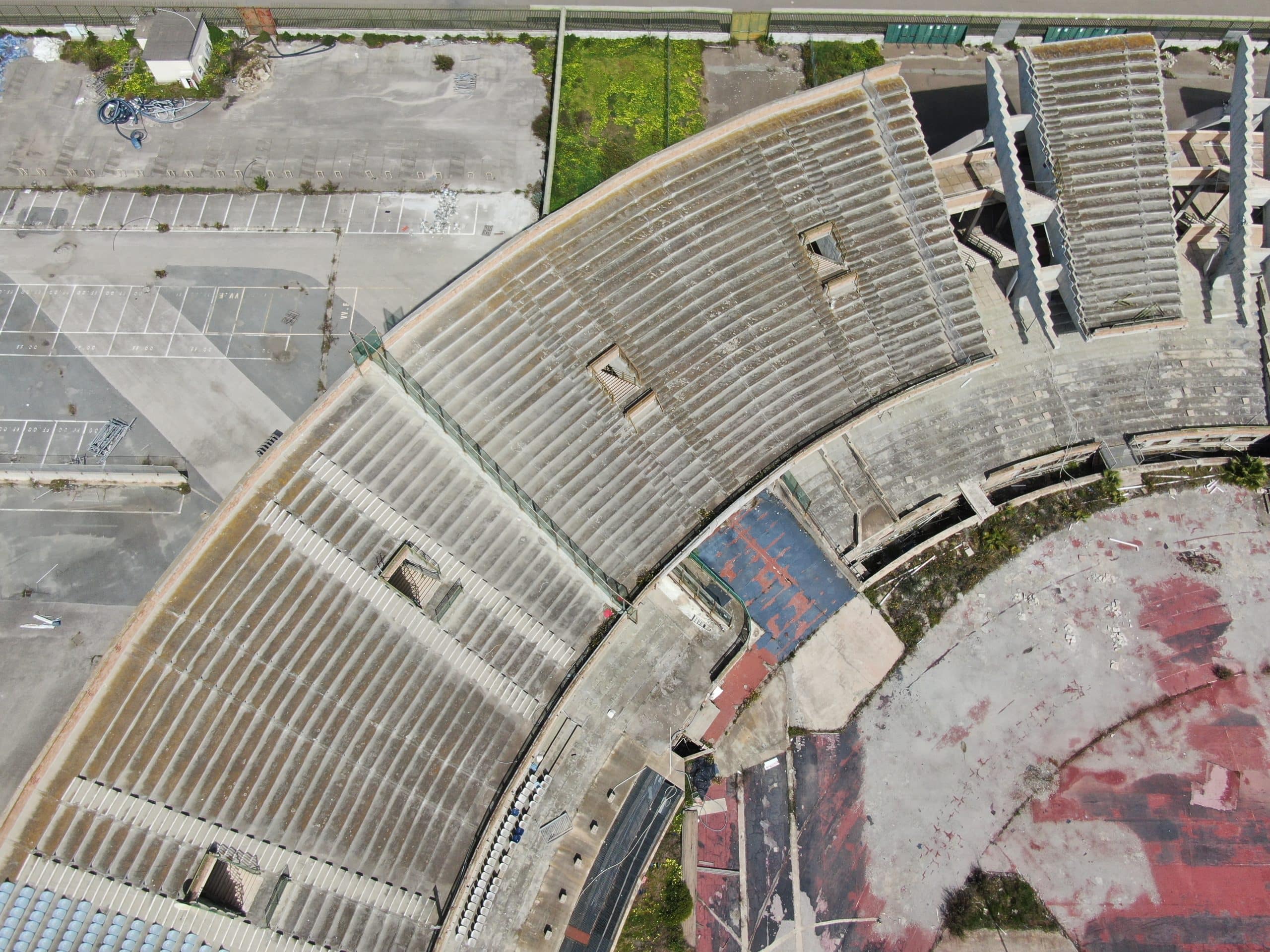 Acquisizione e produzione di immagini aerofotogrammetriche ortofoto e oblique per il Dipartimento di Ingegneria Civile, Ambientale e Architettura (DICAAR) dell’Università di Cagliari. Il lavoro ha riguardato il rilievo aereo dello Stadio Sant’Elia, attualmente in stato di abbandono, con l’obiettivo di documentarne lo stato di conservazione e fornire dati dettagliati per analisi e studi accademici. Le immagini raccolte sono state elaborate per la realizzazione di un modello 3D fotorealistico, utile per valutazioni architettoniche, urbanistiche e di conservazione. Il modello consente un’analisi dettagliata della struttura e supporta eventuali progetti di recupero e riqualificazione dell’area.
